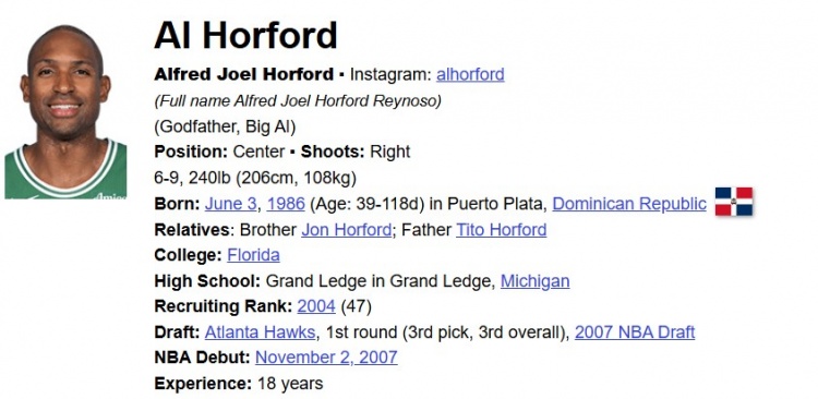 39岁的老将霍福德上赛季仍然有不错的发挥,他出战60场常规赛,场均27.6分钟,得到9分6.2篮板2.1助攻0.9盖帽,投篮命中率42.3%,三分命中率36.3%;11场季后赛,场均31.6分钟,得到8分6篮板1.8助攻1.3盖帽,投篮命中率47.2%,三分命中率40%。