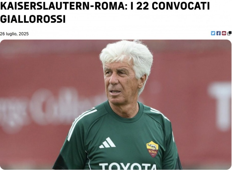 7月26日讯 罗马将在客场和德乙球队凯泽斯劳滕踢一场热身赛,罗马官方公布了本场比赛的22人大名单。