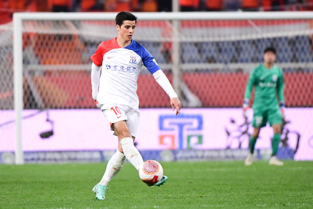 申花制定的战术就是走一点长传球,而且由于高原球速还要比平时平原地区的阻力再小一点,就是你可以用越少的劲让这个球飞得更快。开场之后前10分钟,他们已经打了好几次,那么这种情况下呢特谢拉这个位置的权重就会稍微下降一点。
